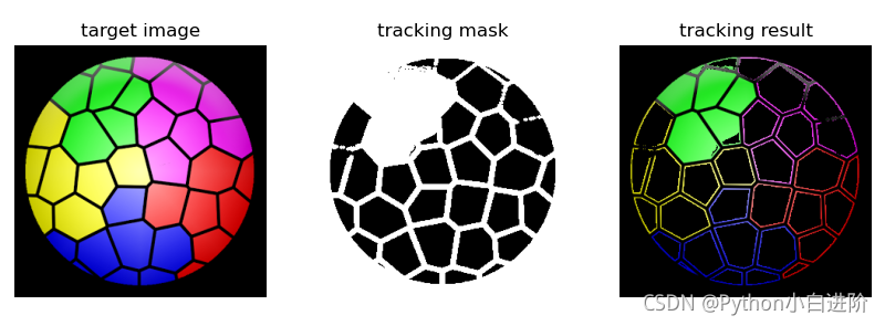 imgTrack = cv2.bitwise_and(target, target, mask=thresh) # 以 thresh 为掩模按位与,显示查找区域