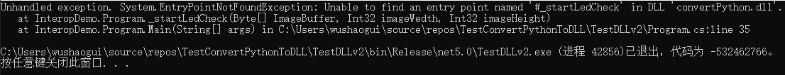 public static extern void CallingCvt_Cdecl(); - (4) 测试: