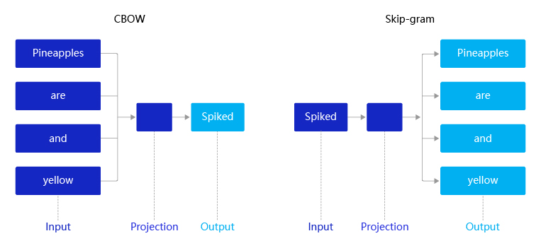 - 一般来说,CBOW 比 Skip-gram 训练速度快,训练过程更加稳定,原因是 CBOW 使用上下文 average 的方式进行训练,每个训练 step 会见到更多样本。而在生僻字(出现频率低的字)处理上,skip-gram 比 CBOW 效果更好,原因是 skip-gram 不会刻意回避生僻字 (CBOW 结构中输入中存在生僻字时,生僻字会被其它非生僻字的权重冲淡)