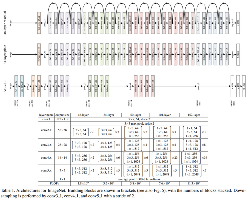 - 分别在 conv3_1、conv4_1 和 conv5_1 Residual Block,降采样 1 倍,同时 feature map 数量增加 1 倍,如图中虚线划定的 block