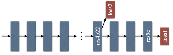 - ResNet101 模型训练期间,使用 权重的辅助损失,以平衡最终损失和辅助损失。在测试过程中,放弃了辅助损失。它是一种深度测试监督的使用策略,训练非常深这个类似 GoogleNet、Inceptionv1 辅助分类