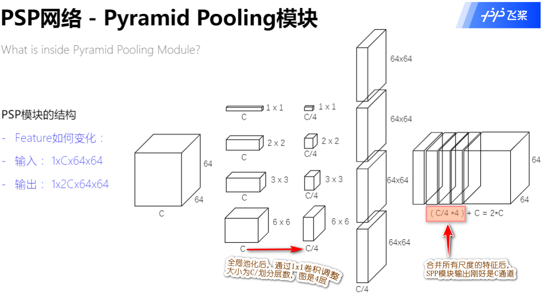 - 解码器 (Decoder):基于金字塔池化后的特征,进行卷积,并通过 1x1 卷积输出 HxWxC 矩阵