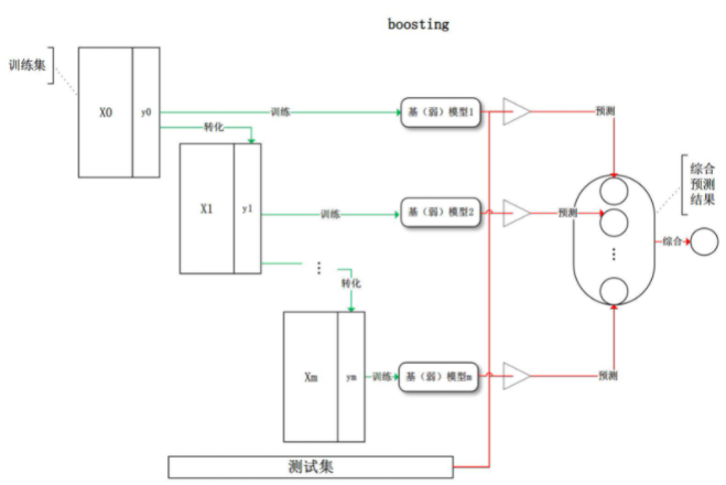 - 典型代表: AdaBoost(Adaptive boosting)、 Boosting Tree 、 GBDT(Gradient Boost Decision Tree)
