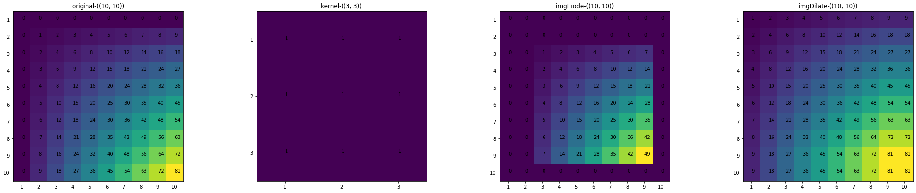 kernel = np.ones(kSize, dtype=np.uint8) # 生成盒式卷积核