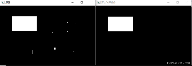 - 先腐蚀后膨胀的过程,通常用于去除噪点、断开狭窄的狭颈、消除细长的突出、平滑物体边界但不改变面积