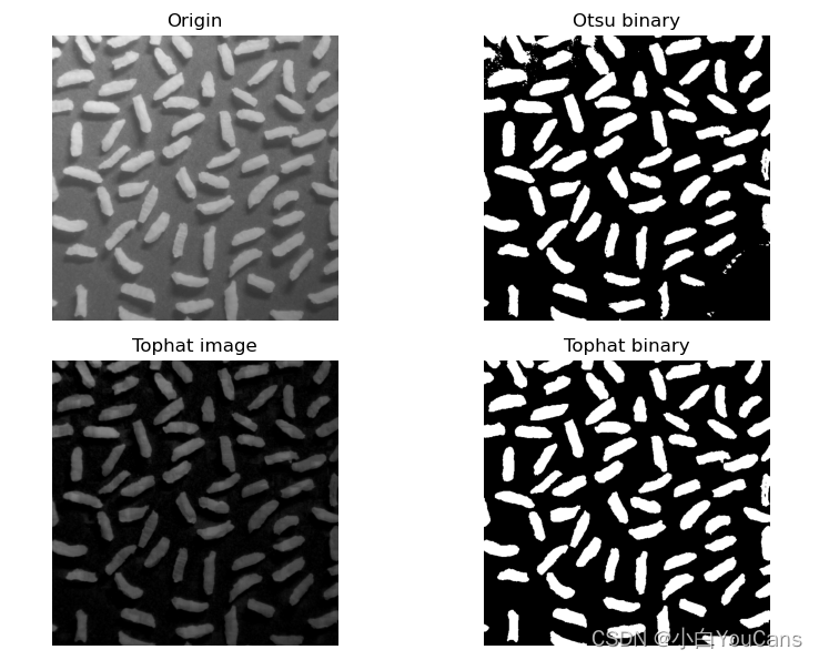 # 顶帽运算后再用 Otsu 最优阈值处理方法进行二值化处理