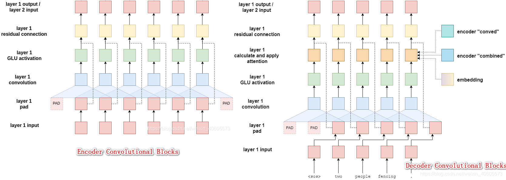 - 是一系列的 1D 卷积 + GLM + 残差连接 过程,卷积时,目标序列前面添加 K-1 个 padding,这是为了每次卷积只能看到自己以前的序列,这类似 transformer 的 mask attenstion