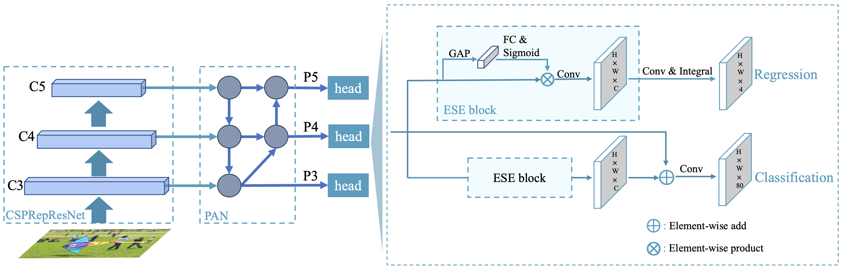 - ESE block:高效的检测头,使用注意力机制,缓解回归和分类问题的 Gap