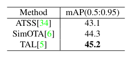 - 使用任务对齐匹配策略后,其 AP 值更高