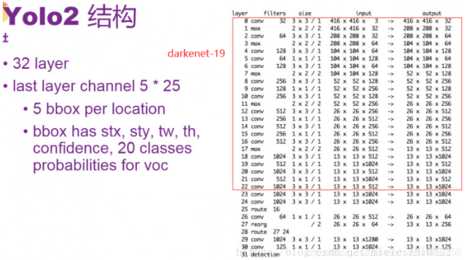 - YOLOv2 的 backbone 使 Darknet19,并使用 C5 的特征做目标检测