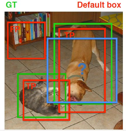 - SSD 使用固定的先验,每个特征图单元都与一组不同尺寸和纵横比的默认边界框相关联。这些先验是手动(但仔细)选择的,而在 MultiBox 中,选择它们是因为它们相对于基本事实的 IoU 超过 0.5