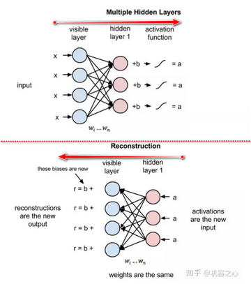 两层的神经网络,即输入层和输出层,训练时包括 2 个方向,从输入层到输出层 + 从输出层到输入层