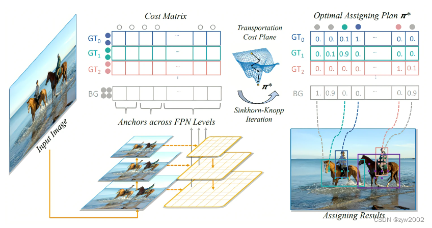 - 求解思路:首先构建 anchor* (num_gt+background) 的代价矩阵,然后使用 Sinkhorn-Knopp 算法求解