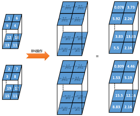 推理过程使用批归一化 (Batch Normalization, BN) 的步骤和训练过程中,如何进行批规范化 (Batch Normalization, BN)? 过程基本一致,差异在于 2 各地方:第一,如何确定 BN 层的参数 ?训练时本来使用整个训练集进行计算,但是为了兼顾优化函数,使用一个 mini batch 进行计算,那么推理时正好用整个训练集计算这 2 个参数