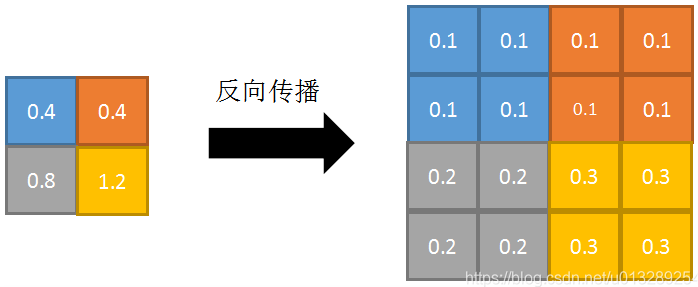 - 正向传播:把一个 patch 中的值求取平均来做 pooling