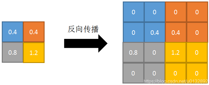 - 以平均池化 (Average pooling) 为例,池化时记住保留最大信息的位置,反池化直接将最大信息填回去,参考:平均池化层反向传播