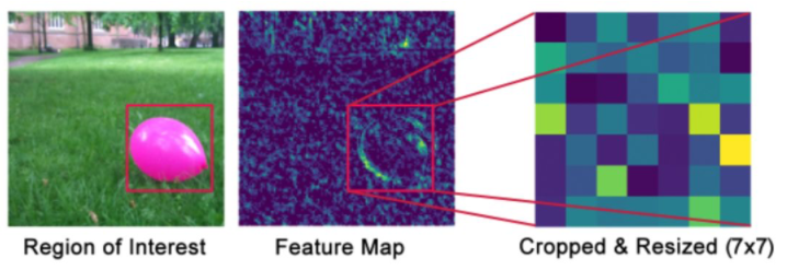 - 感兴趣区域池化 (RoIPooling) 是 Fast RCNN 提出的池化技术,用于将不同大小的特征池化到相同大小。在 Faster RCNN 包括有 2 个输入:(1) 原始的 feature maps;(2) RPN 输出的 proposal boxes(大小各不相同)