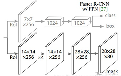 - 在 FasterRCNN] 的基础上新增 FCN 分割模块,黑色部分为原来的 Faster-RCNN,红色部分为在 Faster 网络上的修改。