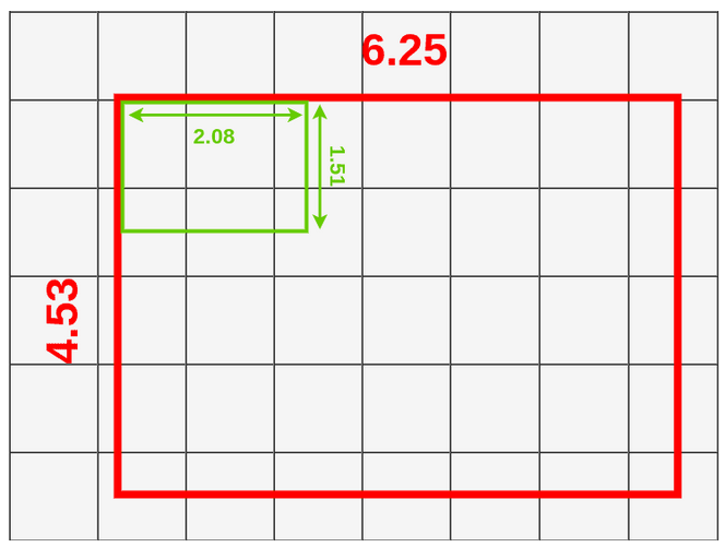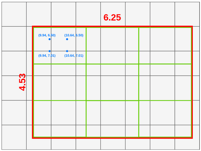 - 将 ROI 区域划分为大小相等的 9 个框,每个框的宽高为 (6.25,4.53)/3=(2.08,1.51)