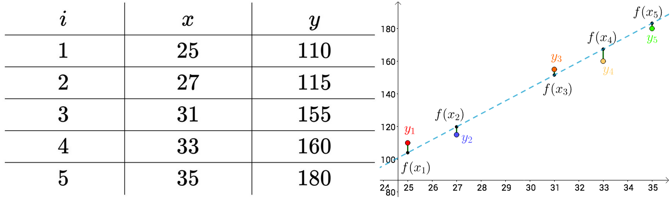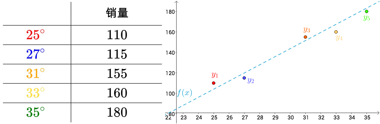 上图假设是温度和买冰淇淋数量的关系图,这里假设这种关系是线性关系,即