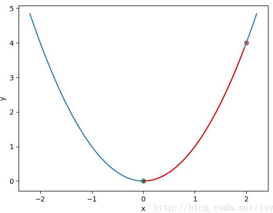 - 例子: 现有函数 ,初始条件为 ,如何通过梯度下降,找到最小值?