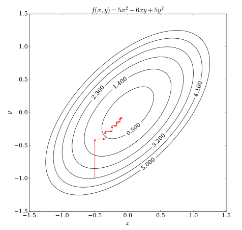 - 按照这个方式更新 x,可以将 y 的值按下图方式滚到坡低