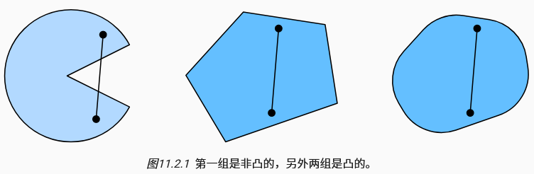 - 凸集:若对集合 C 中任意两点 u 和 v,连接他们的线段仍在集合 C 中,那么集合 C 是凸集