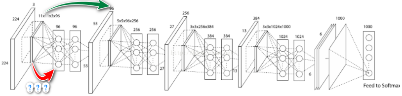 上图标准卷积的输出是 55x55x96,经过 mlp 加工后,输出仍然是 55x55x96。mlp 的计算过程如下图,mlp 连接 1 个卷积核大小(实际上没有卷积核计算,全连接直接连接像素)内每个位置特征,对其进行加权处理后,得到 1 个值,当卷积核扫描完之后,得到和 55x55 长度的特征