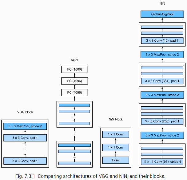 相比较 LeNet、AlexNet 和 VGG,NiN 有什么不同?