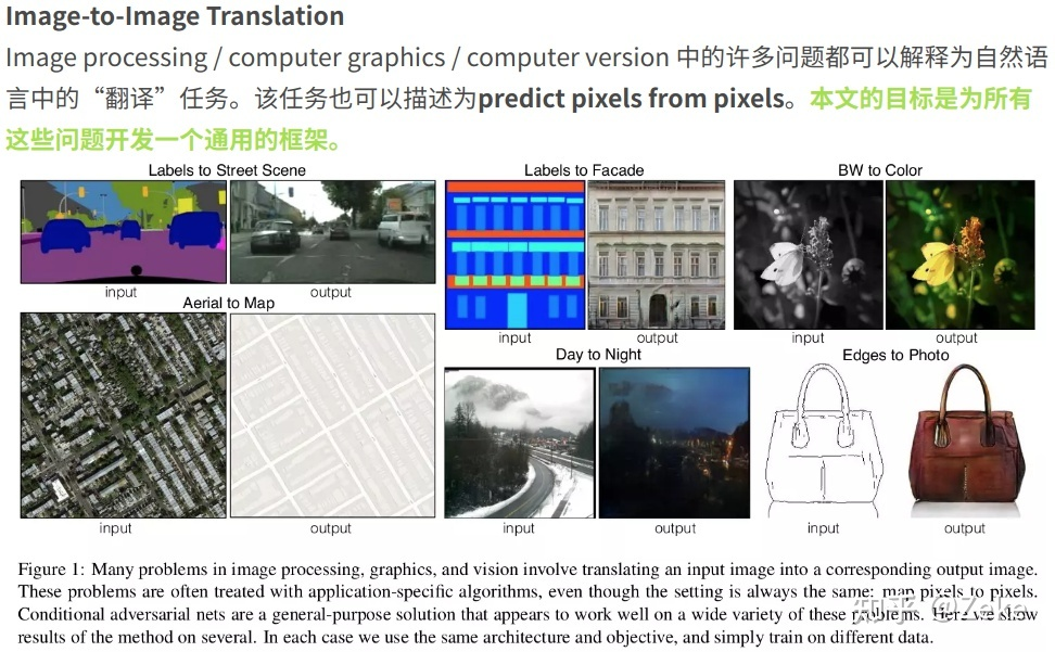 通过在 GAN 中训练成对的图片,完成图片从一个域到另一个域的转换