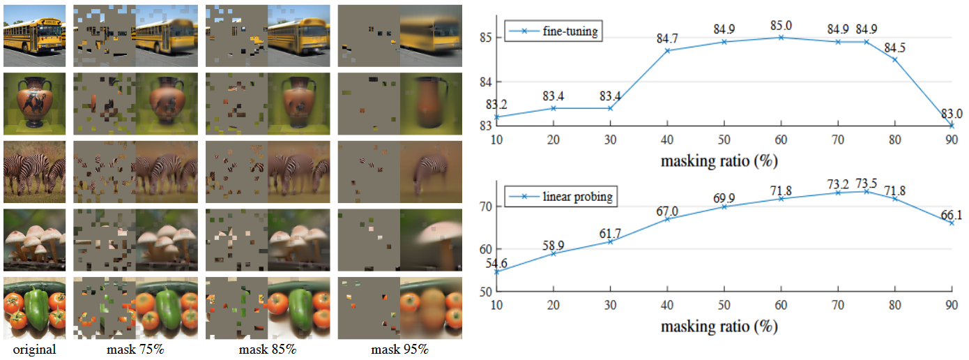 MAE 的不同 Mask ratio 大小对预训练、微调的影响?