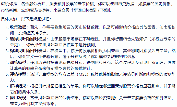 贝叶斯回归 发表于 2021-06-09 更新于 2025-02-02 分类于 1-机器学习 , C-回归 阅读次数: 本文字数: 395 阅读时长 ≈ 1 分钟 什么是贝叶斯回归?一种结合了概率论和统计学原理的回归分析方法。它不仅考虑数据本身,还加入了对模型参数的先验知识,通过计算后验概率来进行预测和估计估计回归问题的概率模型。系数的先验 w 由球形高斯给p(w∣λ)=N(w∣0,λ−1Ip)p(w|\lambda) = \mathcal{N}(w|0,\lambda^{-1}\mathbf{I}_{p})p(w∣λ)=N(w∣0,λ−1Ip)123456>>> from sklearn import linear_model>>> X = [[0., 0.], [1., 1.], [2., 2.], [3., 3.]]>>> Y = [0., 1., 2., 3.]>>> reg = linear_model.BayesianRidge()>>> reg.fit(X, Y) BayesianRidge()