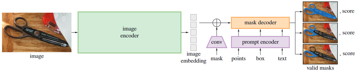 - b) SAM 首先利用 prompt encoder 编码 "分割提示",利用 image encoder 编码 “图片”,然后通过 Mask decoder 解析输出 Mask