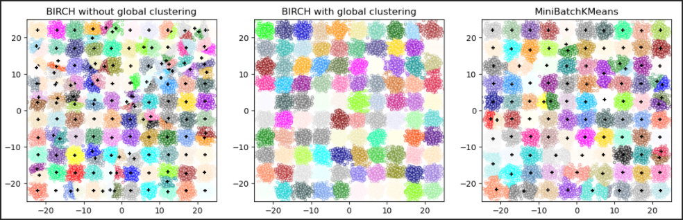 - 如果需要减少数据实例的数量,或者如果需要大量子集群作为预处理步骤或其他方式,BIRCH 比 MiniBatchKMeans 更有用