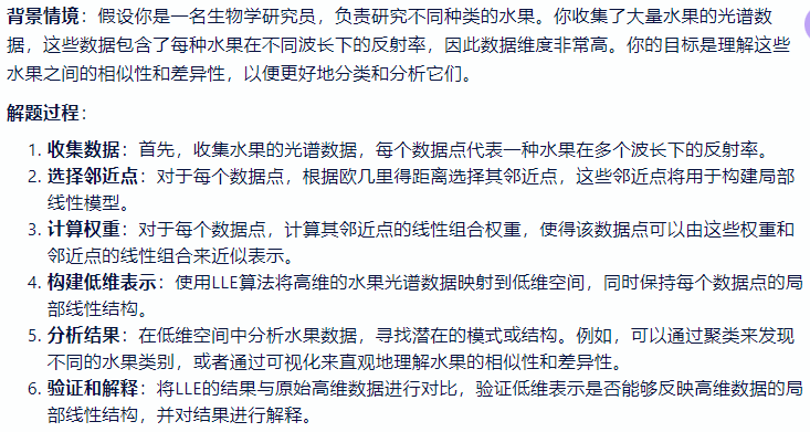 - 一种流形学习算法,用于将高维数据映射到低维空间,同时保留数据在局部区域内的线性结构。LLE 的基本思想是每个数据点可以由其邻近点的线性组合来近似表示,这种局部线性关系在降维后的空间中得以保持
