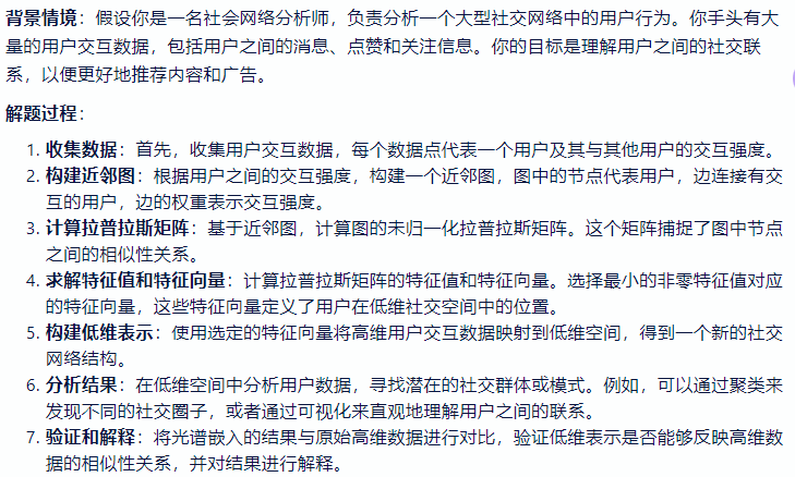 - 一种流形学习算法,用于将高维数据映射到低维空间,同时尽量保持数据点之间的相似性关系。它利用图论中的谱图理论来构建数据点的低维表示,通常涉及到计算图的拉普拉斯矩阵的特征值和特征向量