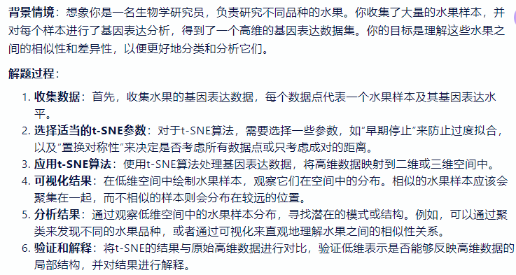 - t 分布随机邻域嵌入(t-Distributed Stochastic Neighbor Embedding, t-SNE)是一种高级的流形学习算法,用于降低数据的维度同时保持数据点的局部结构。它特别适用于高维数据的可视化,因为它能够将高维数据映射到二维或三维空间中,使得相似的数据点在低维空间中彼此靠近,而不相似的数据点则远离