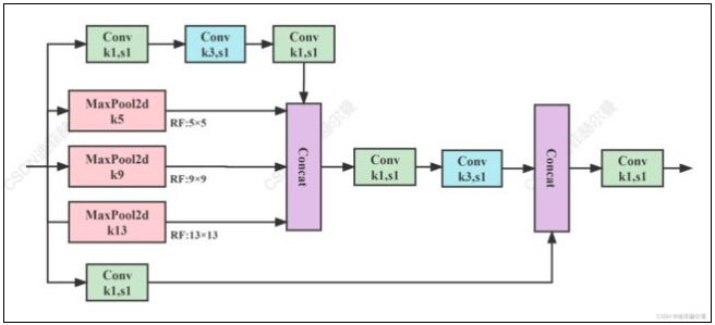 - YOLOv7 中使用的 SPP 结构,在 COCO 数据集上表现优于 SPPF