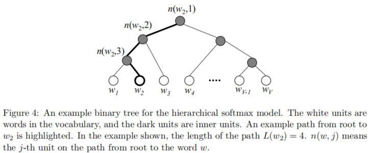 - 层次 softmax 是一种高效计算 softmax 的方法,其使用二叉树来表示词表中的所有词,每一个词都必须是树的叶子结点,对于每一个结点,都存在唯一的路径从根结点到当前叶子结点,该路径就被用来估计此叶子结点表示的词出现的概率