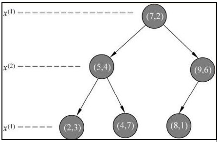 - kd 树是一种对 k 维空间中的实例点进行存储以便对其进行快速检索的树形数据结构, 并且是二叉树