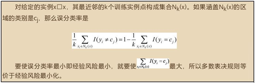 - 采用 “多数表决规则”,多数表决规则等价于经验风险最小化