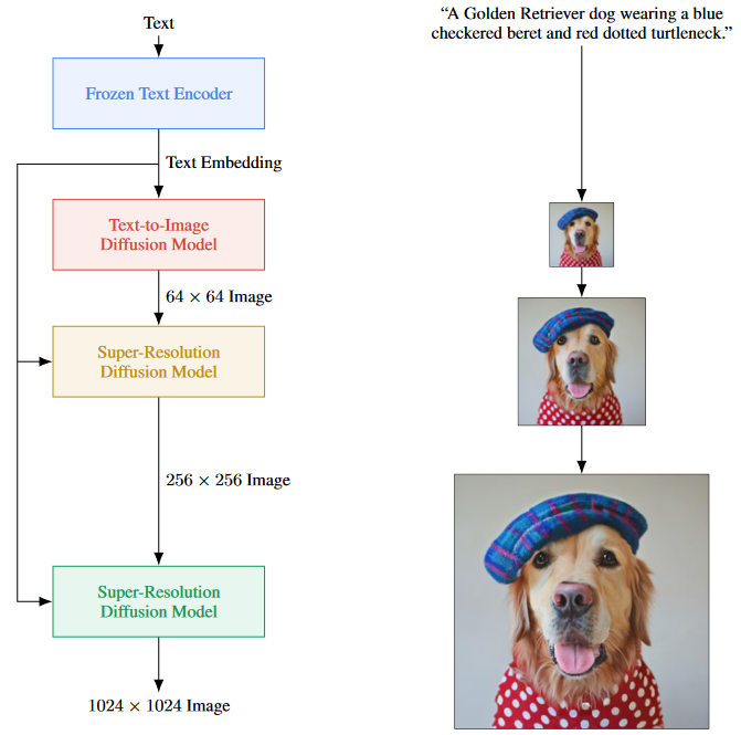 直接基于文本信息扩散为低分辨的图片编码,然后再使用超分辨率网络上采样。结构更简单)