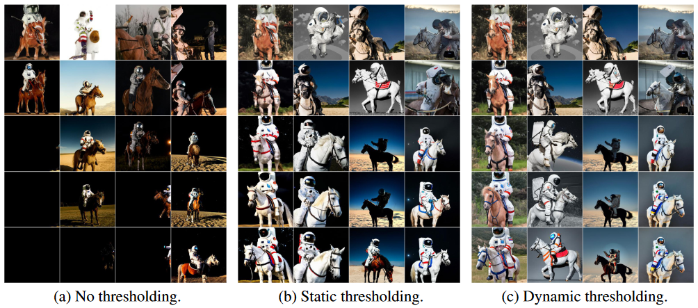- 除此之外,还提出 Efficient U-Net 来节省内存,使用 dynamic thresholding 来改进 diffusion sampling