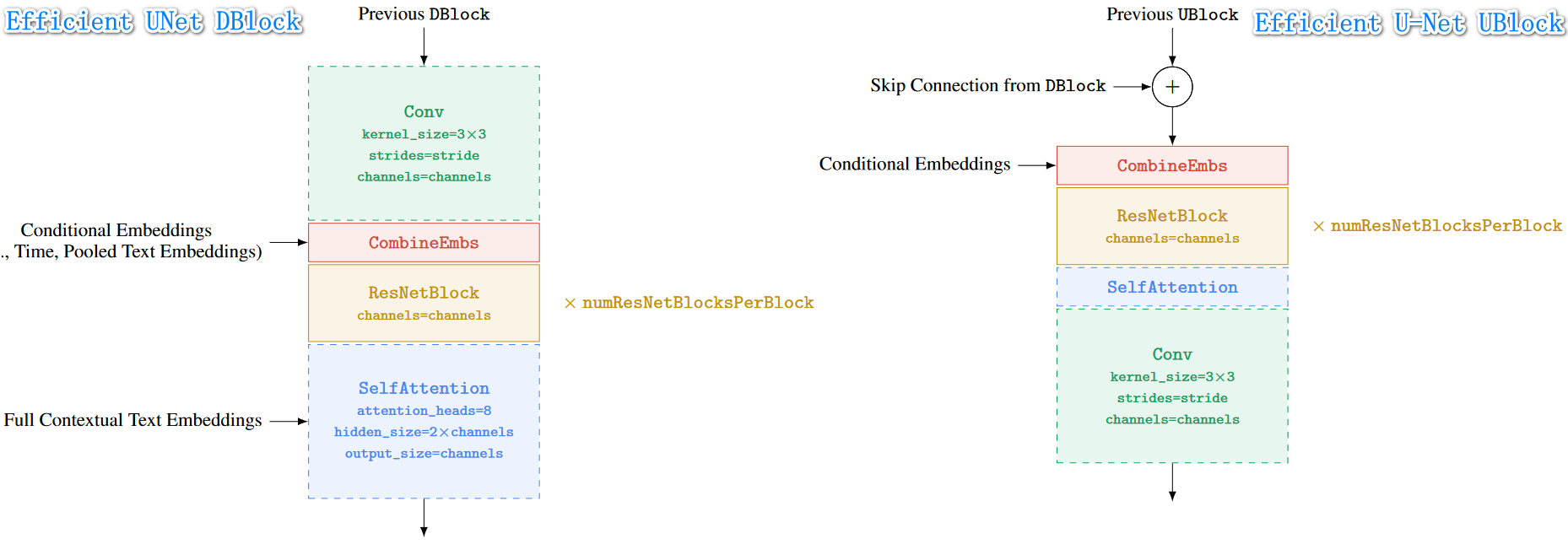 - 上面分别是 Efficient U-Net 的下采样、上采样模块