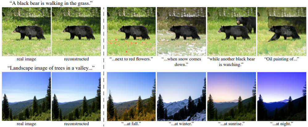 - 这里说明,直接给一张图,怎么对它进行编辑,这里的难点是给定一张真实图像如何找到给定输入图像的初始噪声,本文采样了一种改进的倒置方法,它基于特定的 DDIM 模型而不是 DDPM 模型,上图是左边是用 DDIM 采样的倒置过程重构的图,右边是用本文方法编辑的图像