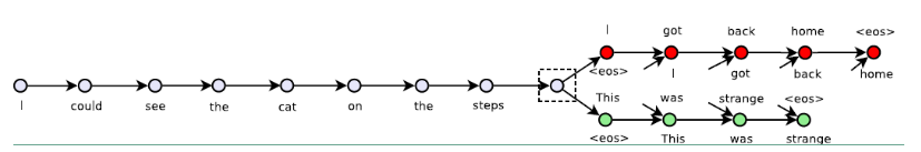 I could see the cat on the steps,输出得到上文句子I got back hom <eos>和下文句子This was strang <eos> - SkipThoughtVectors 首先由一个编码器编码中心句,得到中心句的 "句表示",然后分别输入上文解码器和下文解码器,得到上下文句子输出