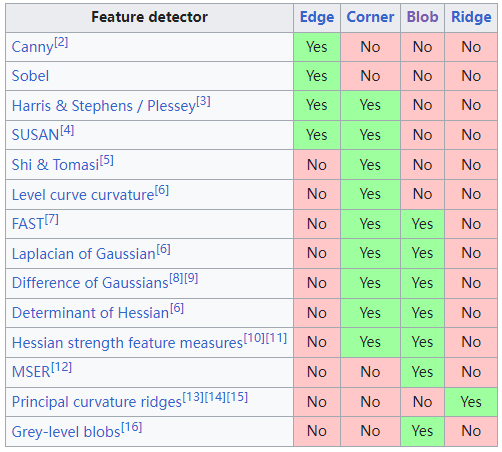 - 在图像处理和计算机视觉领域,图像特征可以用来解决目标识别、图像匹配、视觉跟踪、三维重建等一系列问题。图像特征主要包括三种类型:(1) 角点 (Corner);(2) 边缘 (Edge);(3) 区域 (Blob);(4) 山脊 (Ridge),其实就是点、线、面、曲线