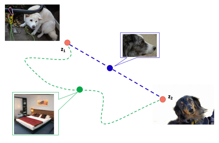 - 在优秀的 GAN 网络中,得到的结果应该是 perceptual 距离也是最短的,类似 z 1 变换到 z 2 时,其移动路线应该是蓝色的,而不是绿色的