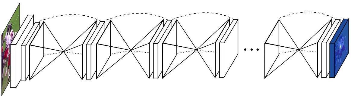 - 下采样:使用卷积层和最大池化层将 feature map 下采样到非常低的分辨率,在最大池化层前使用相对更多的卷积(在原分辨率上进行卷积操作)