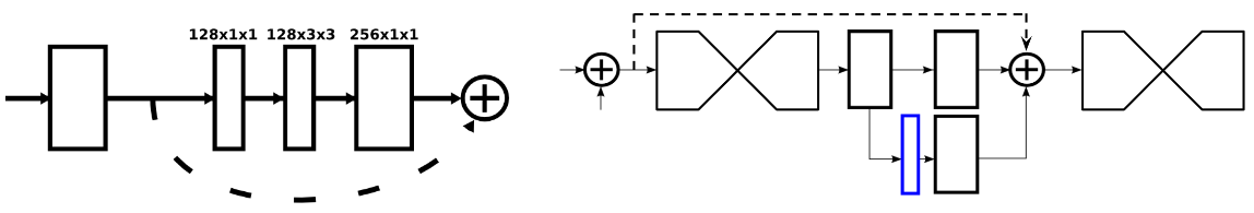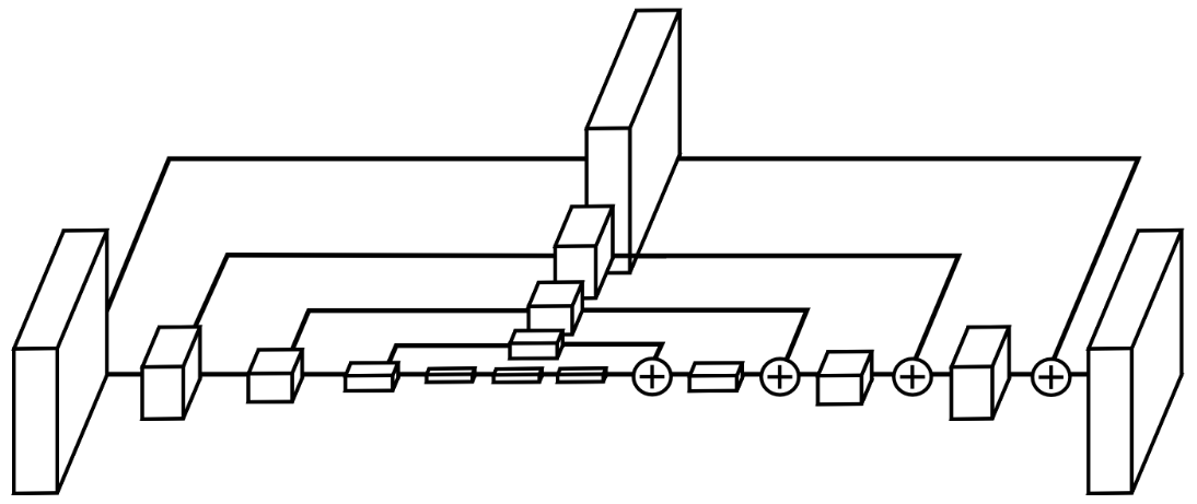 - Residual Module:使用 1 x 1 卷积减少通道数,使用 3 x 3 卷积不降低分辨率提取特征,然后再使用 1 x 1 卷积还原通道数,最终和原始特征相加输出